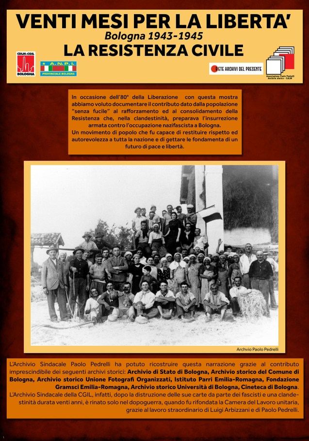 In occasione dell’80° della Liberazione con questa mostra abbiamo voluto documentare il contributo dato dalla popolazione “senza fucile” al rafforzamento ed al consolidamento della Resistenza che, nella clandestinità, preparava l’insurrezione armata contro l’occupazione nazifascista a Bologna.